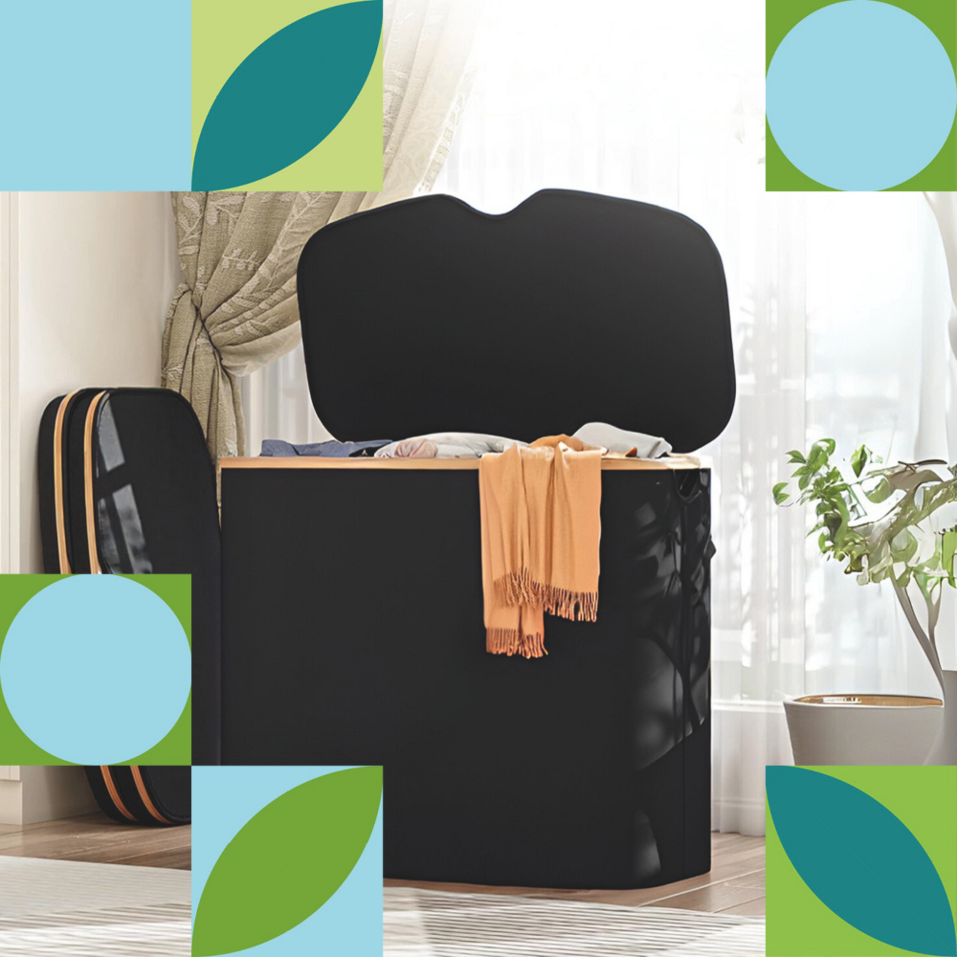 De wasmand is gemaakt van stevig en duurzaam Oxford canvas met een elegant bamboe frame dat past in elk interieur. Het deksel houdt je vuile was netjes uit het zicht, en dankzij het opvouwbare ontwerp berg je hem eenvoudig op wanneer nodig.